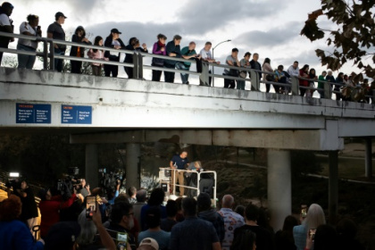 Crowds watch as Mexican Free-tailed bats are released at the Waugh Bridge in Houston, Texas, on December 28, 2022 © AFP Mark Felix